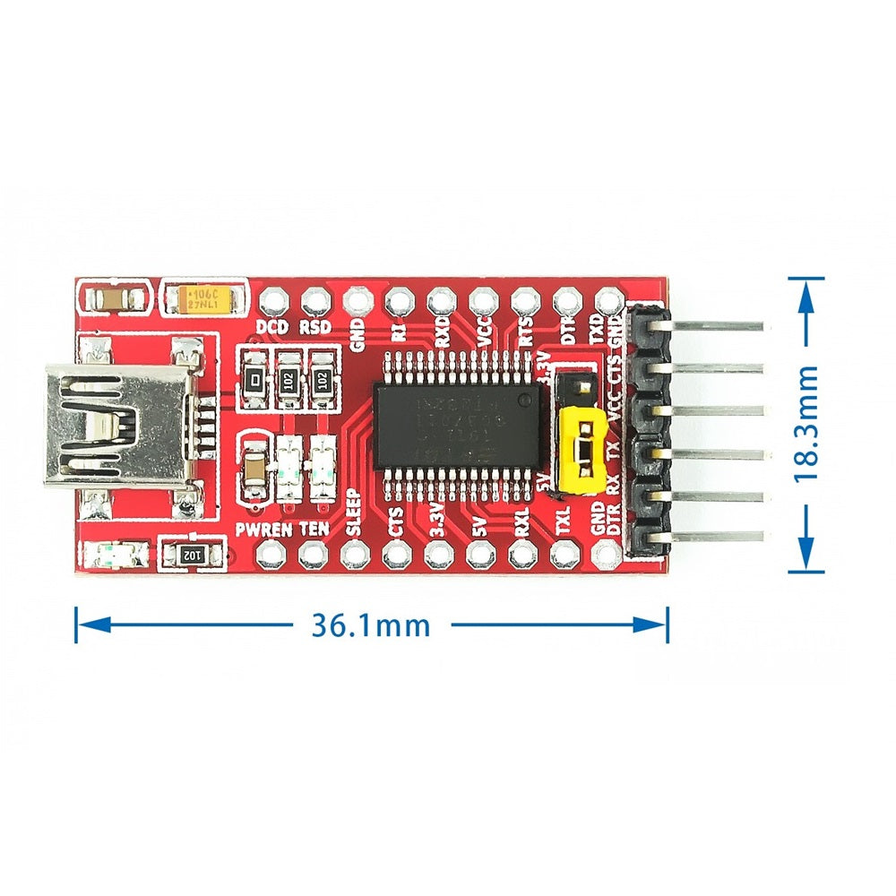 The FT232RL USB to TTL 3.3V/5V FTDI Serial Adapter Module is a popular module that is used to connect a TTL serial communicating device to a PC via a USB mini port. This converter module has options for different output voltage options which are set by the jumper on the board. FT232RL USB to TTL Serial Adapter Module can be used to upgrade any legacy peripherals to USB.