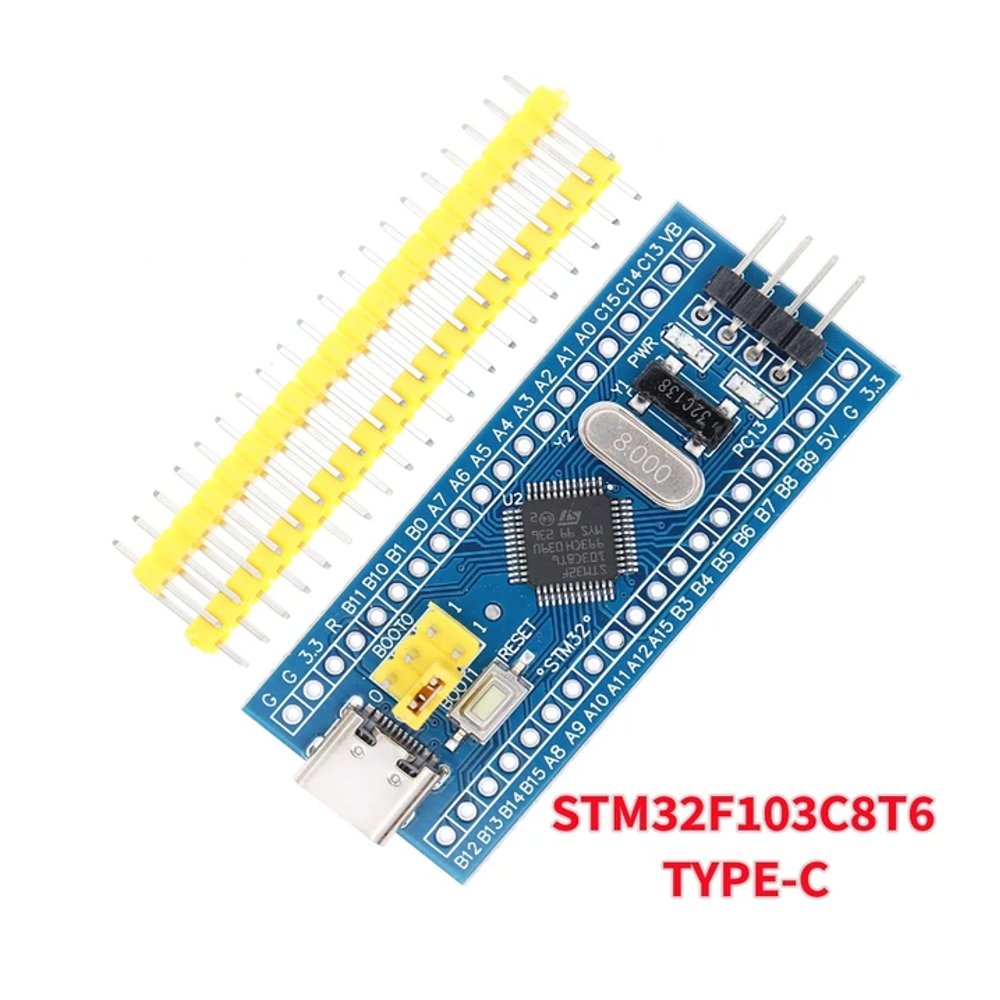 The STM32F103C8T6 Development Board is a popular choice to learn how to program the STM32 Microcontrollers from ST Microelectronics. The board consists of the STM32F103C8T6 microcontroller which is a ARM Cortex-M 32-bit processor. With its LQFP package type and 48 pins and two crystal oscillators of 8MHz and 32KHz crystal, the STM32F103C8T6 provides a compact yet robust platform for your designs which holds. The MCU has inbuilt 5V to 3.3V voltage regulator to power the MCU. Unlike Arduino boards, the STM32 Development board works on 3.3V.